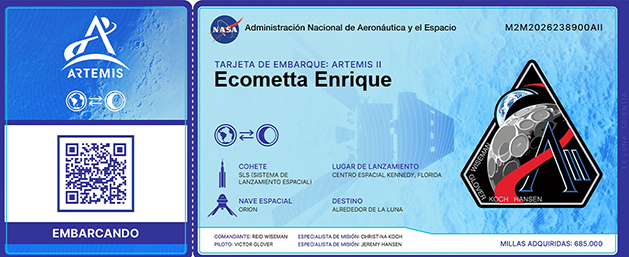 El cohete lunar Artemis II de la NASA ya está en el Espacio Misión tripulada que orbitará la luna La Asociación Ecometta es uno de los 5 millones de nombres que darán la vuelta a la luna con ellos en el microchip de la nave. La primera ventana de lanzamiento se abrirá a las 18:24 hora local de Florida, lo que en España se traduce en la madrugada del 2 de abril, a las 00:24 en la península. De sufrir cualquier imprevisto, el nuevo intento tendría lugar el 2 de abril a las 19:22 (01:22 del 3 de abril en España). ![]() ![]() La Asociación Ecometta colabora con: Astronomy Picture of the Day - Archivo NASA - Foto del día de la NASA 28/ 3 /2026 Robert Goddard y Nell Image Credit: Esther Goddard, from the Clark University archive ![]()