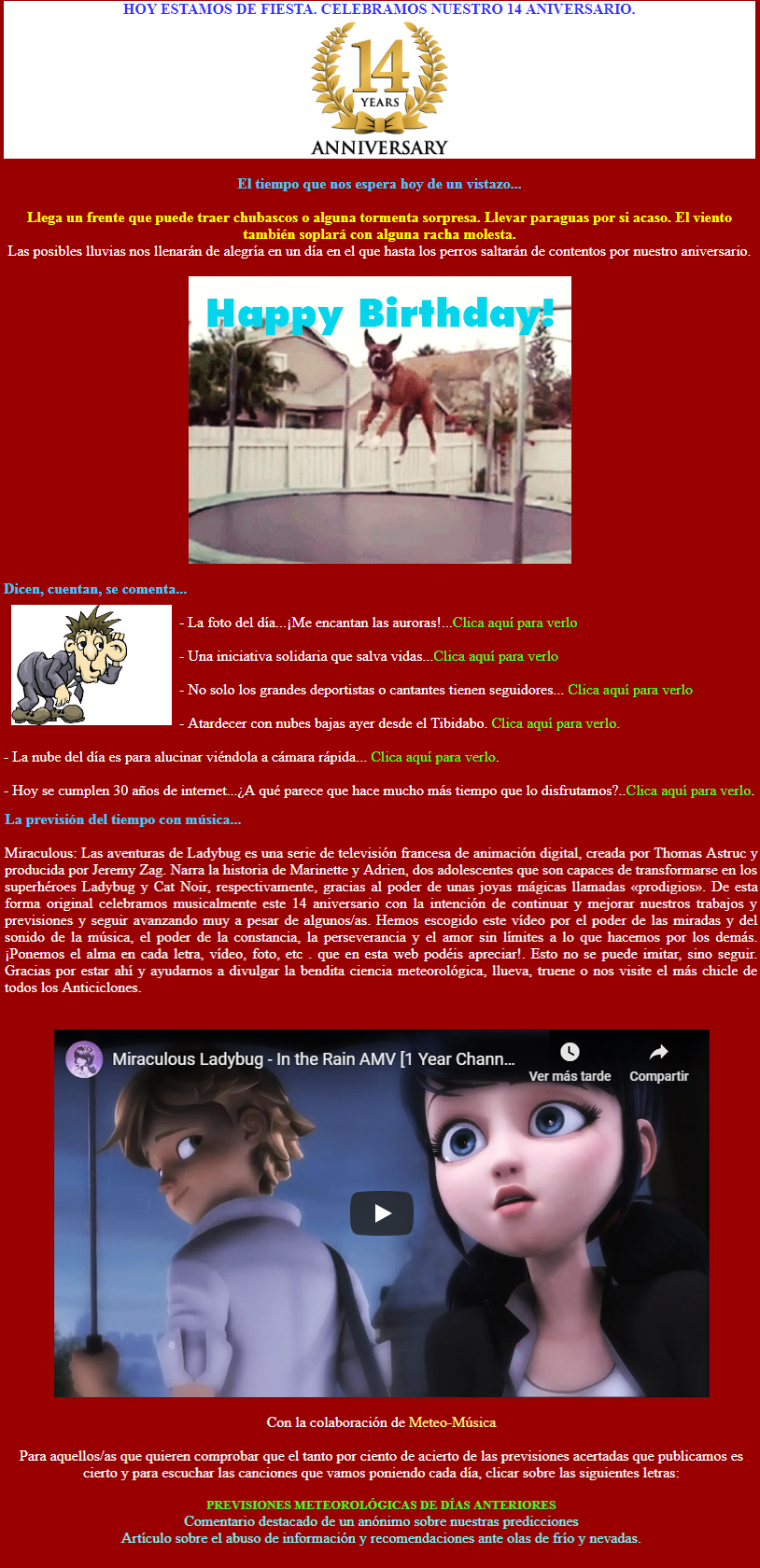 El 13 de Marzo de 2019 esta web celebra su 14 Aniversario