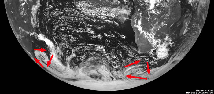 ver desde el espacio. Las tormentas principales se etiquetan de
