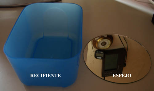 Si queréis podéis crear un Arco Iris en vuestra casa. La verdad es que es un experimento facil de hacer y que nos encantó realizar. Solo necesitáis un recipiente y un espejo: ![]() Llenáis el recipiente de agua (puede ser una olla) hasta un poco más de la mitad, ponéis el espejo dentro (no importa que sea redondo o cuadrado) y lo lleváis a la terraza cuando haga sol. ![]()