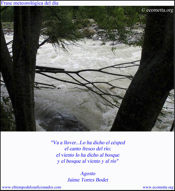 "Va a llover...Lo ha dicho el césped el canto fresco del río; el viento lo ha dicho al bosque y el bosque al viento y al río"