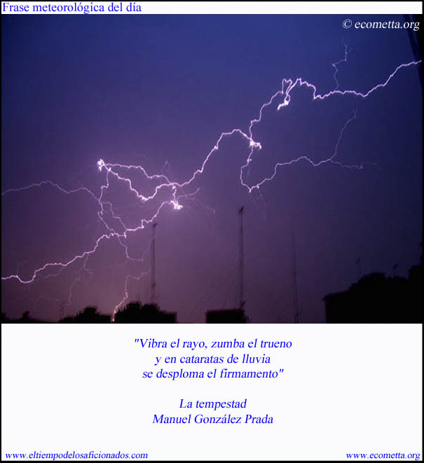 "Vibra el rayo, zumba el trueno y en cataratas de lluvia se desploma el firmamento"