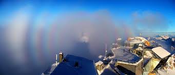HEILIGENSCHEIN ![]() ![]() Es como una gloria excepto que el brillo o aureola es blanco alrededor de la sombra de la cabeza del observador, cuando ésta se proyecta sobre el fondo de una niebla o nube mas baja. |
