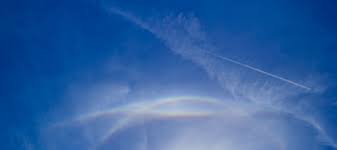TANGENTE SUPERIOR ¿Necesitamos nubes para verlos? ![]() Normalmente, para ver un arco tangente superior, necesitamos la presencia de nubes altas, como cirros o cirroestratos, formados por cristalitos de hielo, como hemos descrito antes. Los rayos del sol, en contacto con estos prismas de hielo, se reflejan y provocan estas figuras. Pero también podemos ver fantásticos parhelios como éstos, sin
