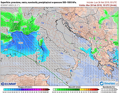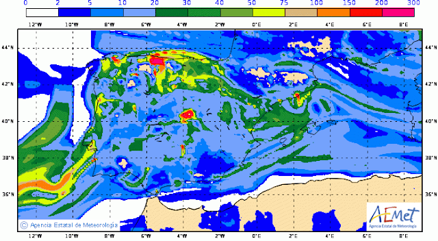 Para los que les interesan las actividades náuticas en el Mediterráneo. El color del fondo indica la altura de las olas. |