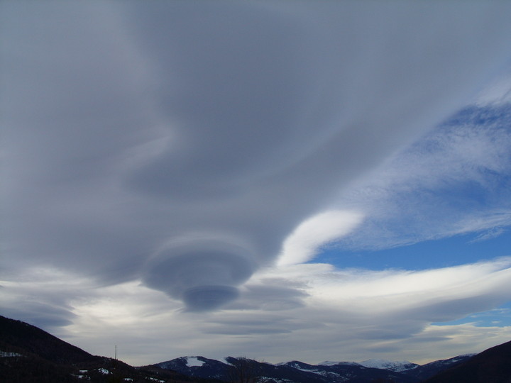 Día 19 Sabies que... "A Alemanya, els núvols lenticularis reben també el nom de núvols Moazagolt. L'origen d'aquesta paraula ho trobem en el nom d'un pastor que antany va viure a les muntanyes de Silesia, el nom del qual era Gottlieb Matz, i que pronosticava el temps observant els núvols" Autor de la curiositat meteorològica: José Miguel Viñas Font: AEMET Espectacular núvol lenticular que vam fotografiar a Pardinas, prop de Ribes de Freser. Aquesta foto va quedar finalista en el concurs que va realitzar José Antonio Maldonado en el seu prestigiós Blog. ![]() © Enrique Sánchez Els altocumulus lenticularis són molt fotogènics i es queden hores i hores posant per als fotògrafs que admiren la seva bellesa ... això si el vent que anuncien aquests núvols no se'ls emporta per devant..es clar. ![]() |