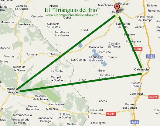 Día 20 Sabies que... "El triangle imaginari que formen les localitats de Daroca, a la província de Saragossa, Calamocha, a Terol, i Molina d'Aragó, a Guadalajara, rep el nom del "triangle del fred" per les baixes temperatures mínimes que allí solen registrar-se" |