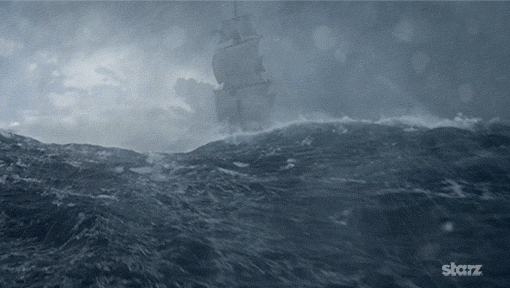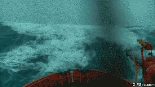 Es formen grans onades amb crestes d'escuma blanca per tot arreu