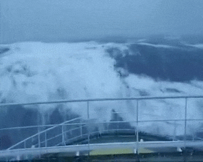 L'aire és ple d'escuma i aigua polvoritzada. La mar completament blanca. Visibilitat pràcticament nul·la.